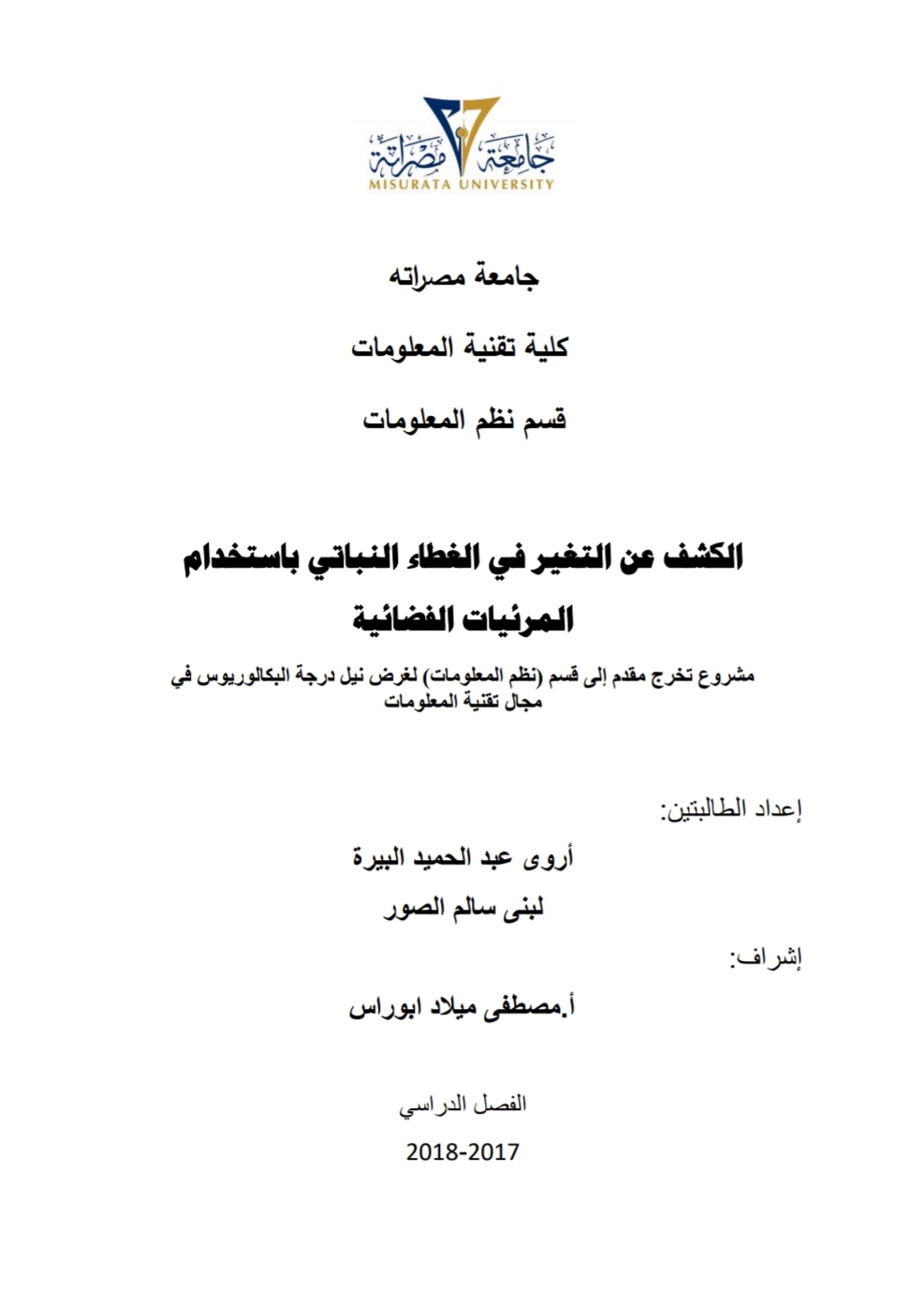 مشروع تخرج بعنوان الكشف عن التغير في الغطاء النباتي باستخدام المرئيات الفضائية