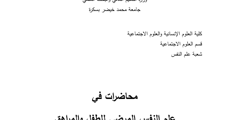 تحميل محاضرات علم النفس المرضي لطفل و المراهق Pdf خياط خالد